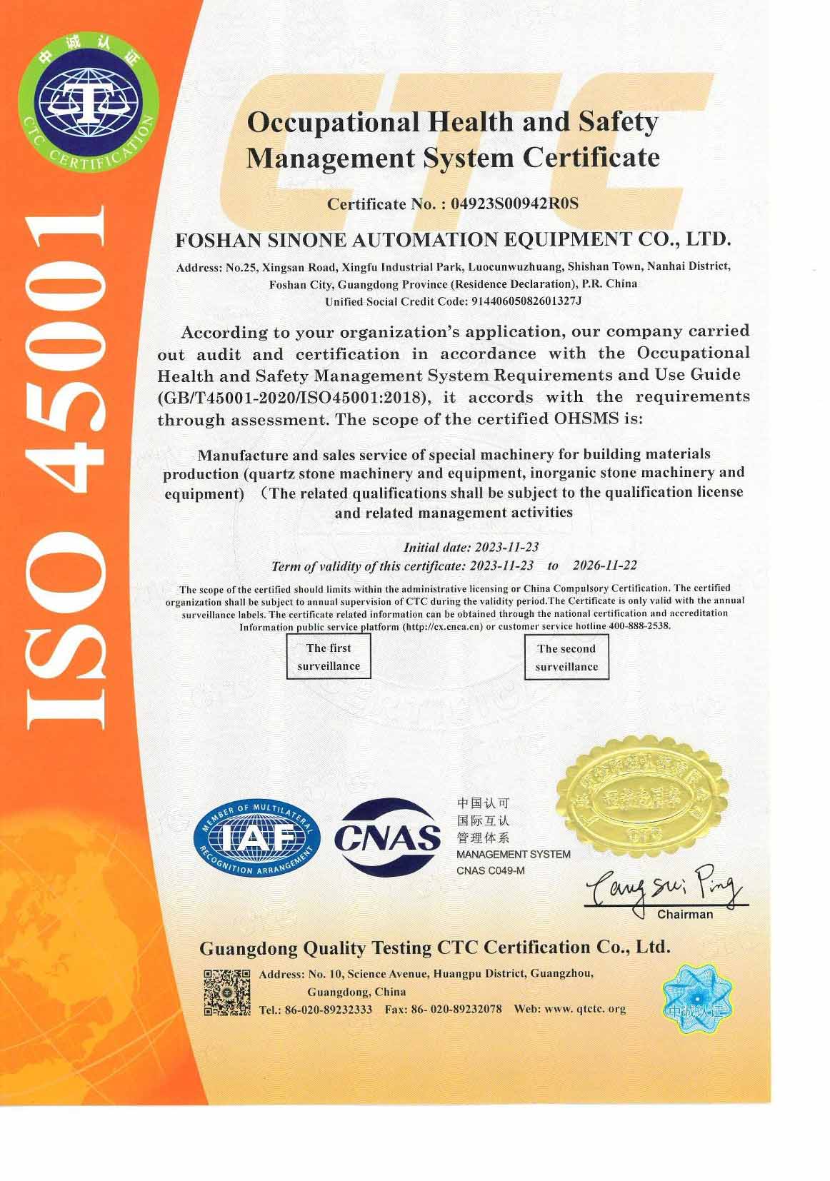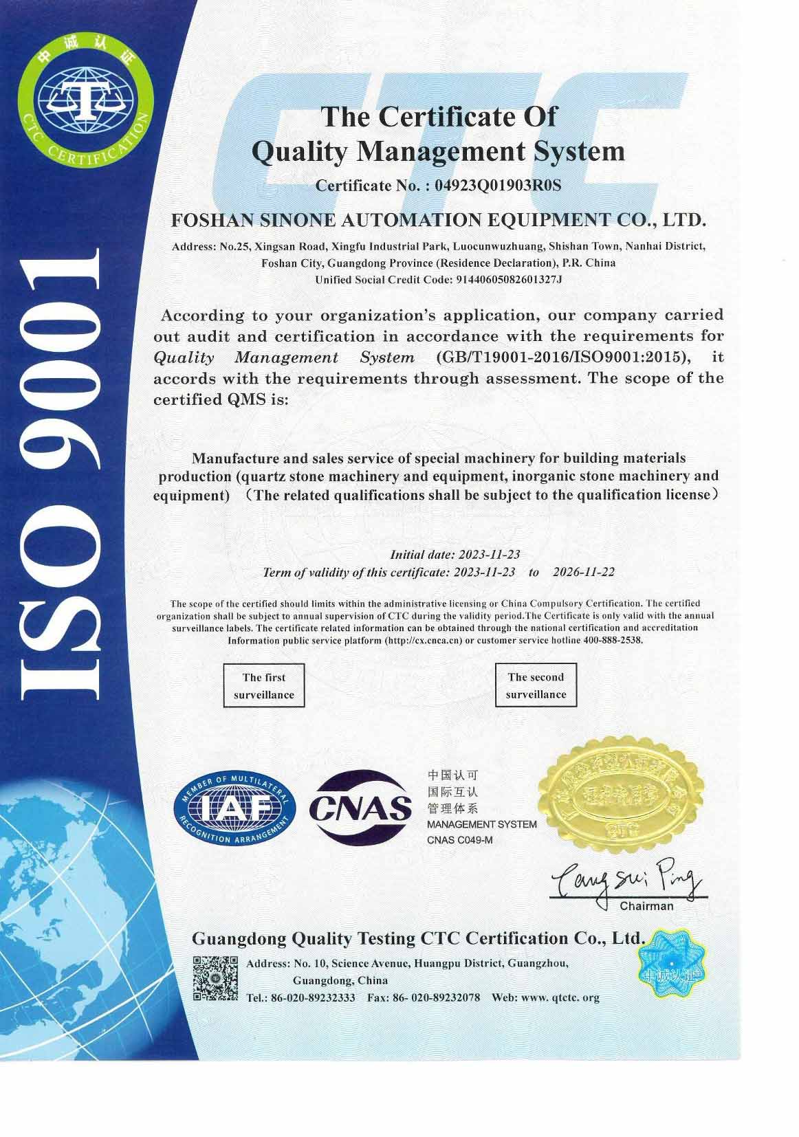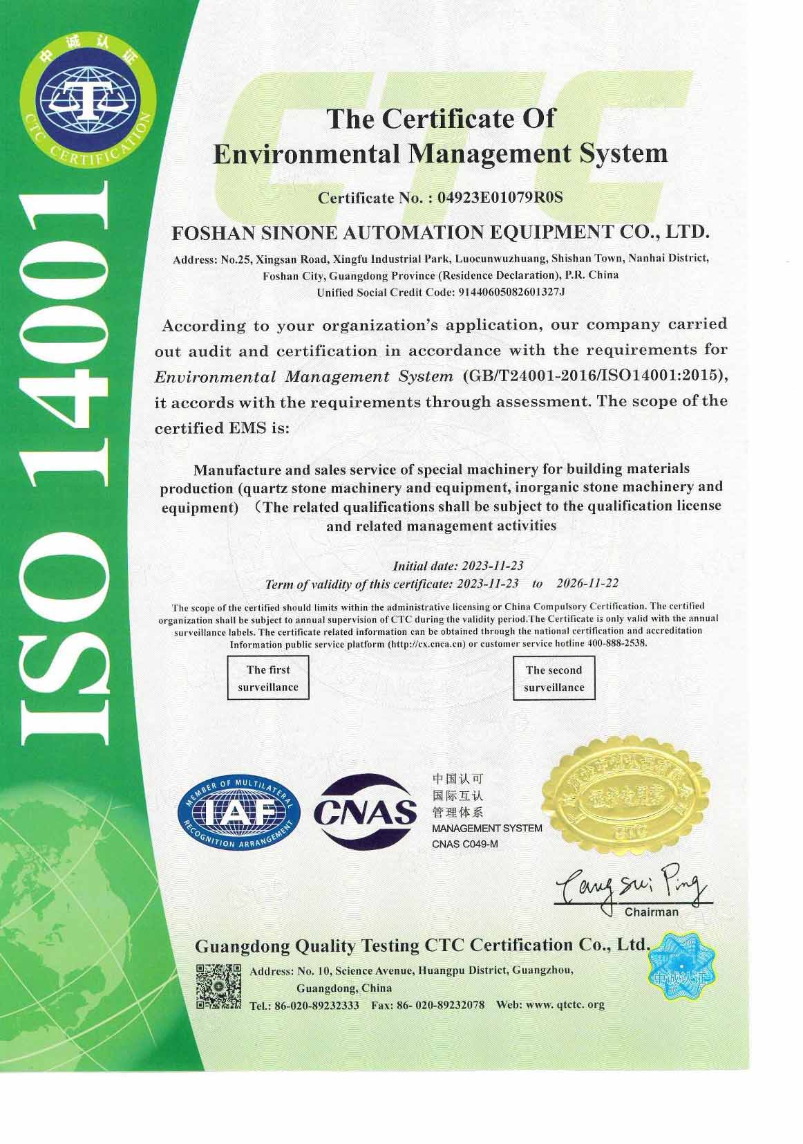 Foshan Sinone Automation Equipment Co., Ltd. was established in 2013, specializing in the research, development, manufacturing, and sales of quartz stone and inorganic stone production line equipment.